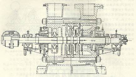 低壓鎘爐給水泵輸送液體的溫度一般在110℃左右,其結(jié)構(gòu)和一般分段式多級(jí)離心泵基本相同,大部分可以互相通用。對(duì)于中壓鍋爐給水泵,由于工作壓力和工作溫度比低壓的高,通常對(duì)軸封裝置的要求也較高,軸承除需要潤滑外,有的還用循環(huán)水冷卻。為了隔熱,有的在泵體外用鋼板卷成圓筒罩。泵的支承有的采用中心支承。